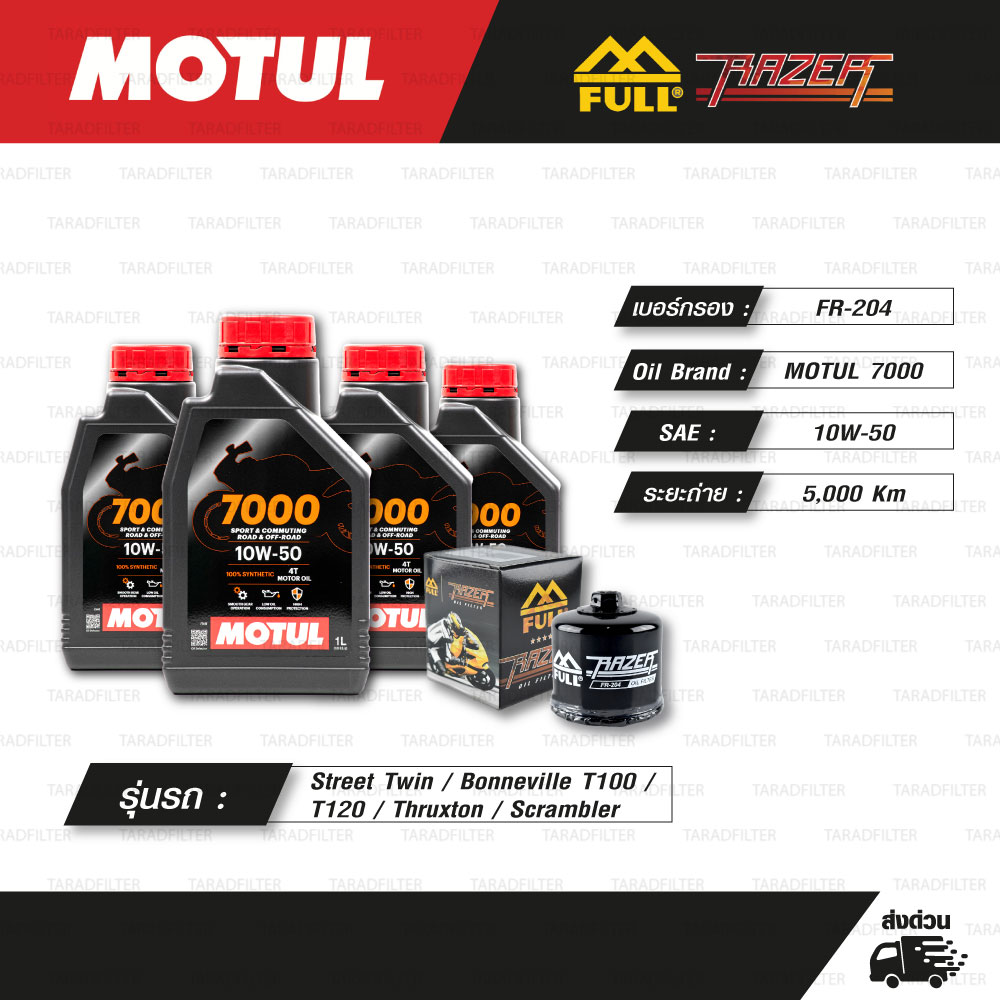 ![FULL RAZER ชุดถ่ายน้ำมันเครื่องสังเคราะห์แท้ MOTUL 7000 4T [ 10w-50 ] ใช้สำหรับ มอเตอร์ไซค์ TRIUMPH Street Twin / Bonneville T100 / T120 / Thruxton / Scrambler](https://www.taradfilter.com/wp-content/uploads/2023/04/Triumph-3.jpg)