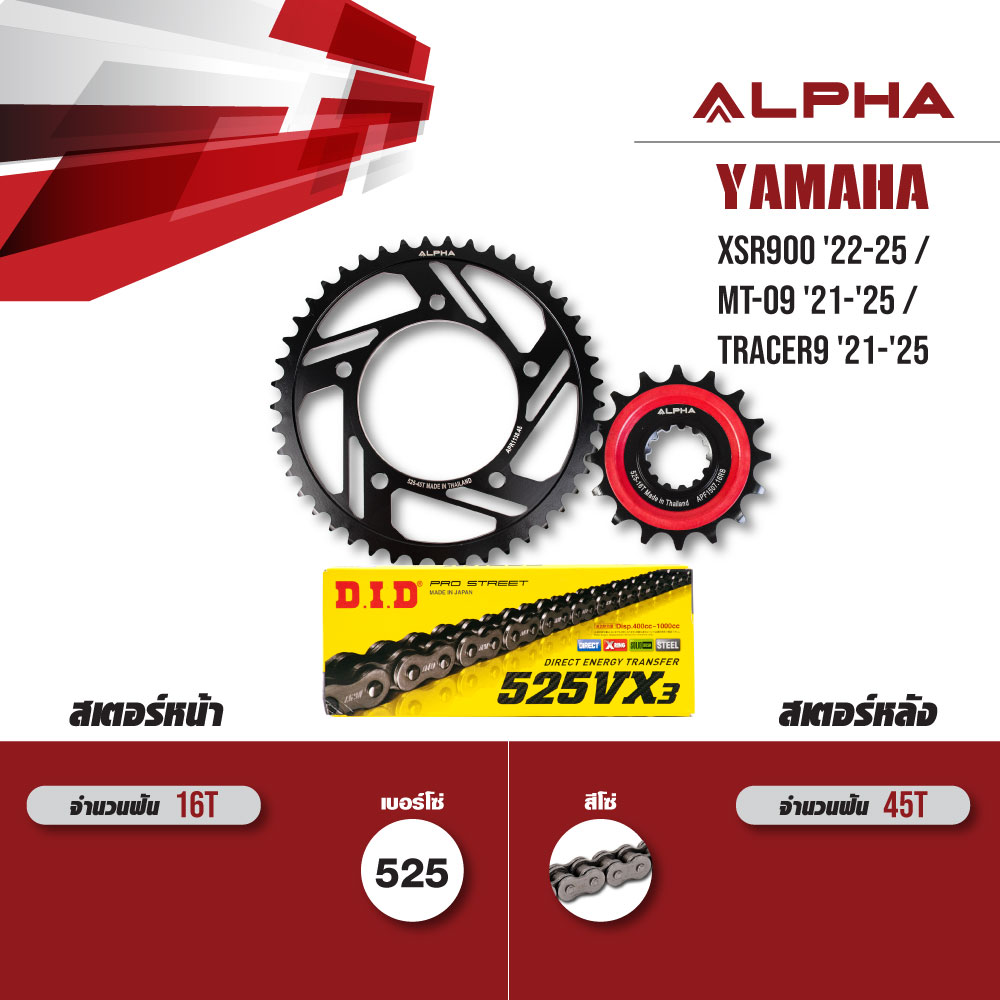 ![ชุดโซ่สเตอร์ ALPHA เปลี่ยน Yamaha XSR900 '22-25 / MT-09 '21-'25 / Tracer9 '21-'25 โซ่ D.I.D VX3 สีเหล็ก [ 16/45 ]](https://www.taradfilter.com/wp-content/uploads/2026/01/Untitled-3-1.jpg)