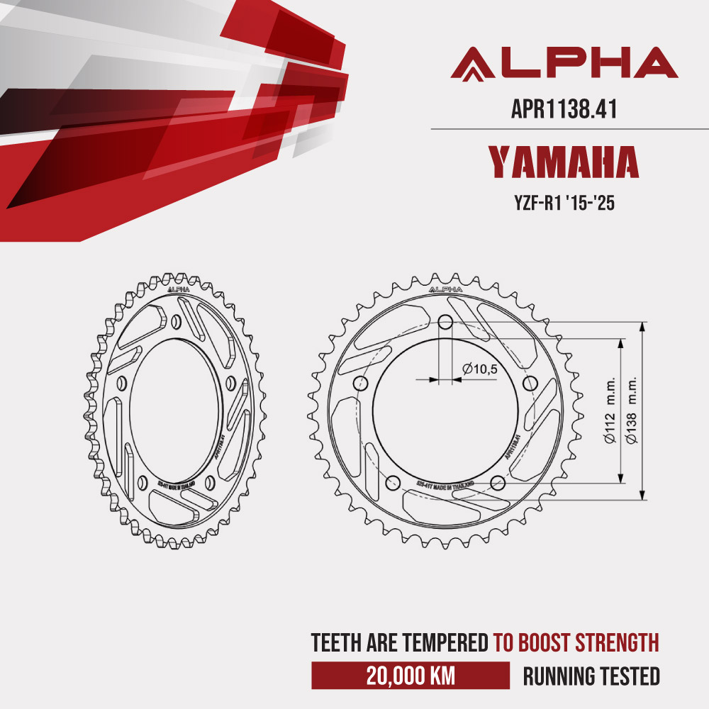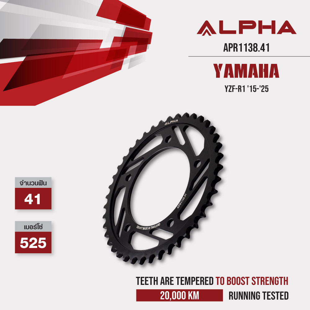 ![ALPHA สเตอร์หลัง 41 ฟัน สีดำ ใช้สำหรับ Yamaha YZF-R1 '15-'25 [ APR1138.41 ]](https://www.taradfilter.com/wp-content/uploads/2026/01/APR1138.41-5.jpg)
