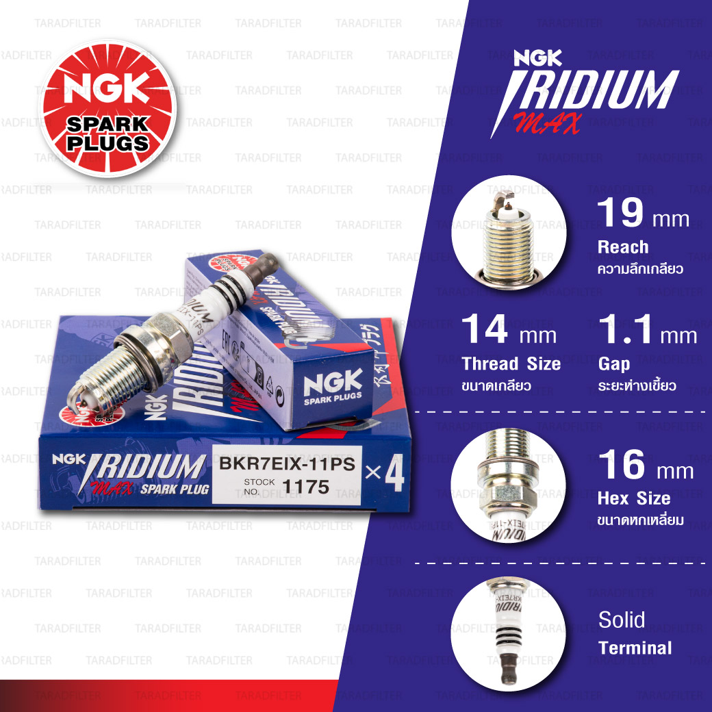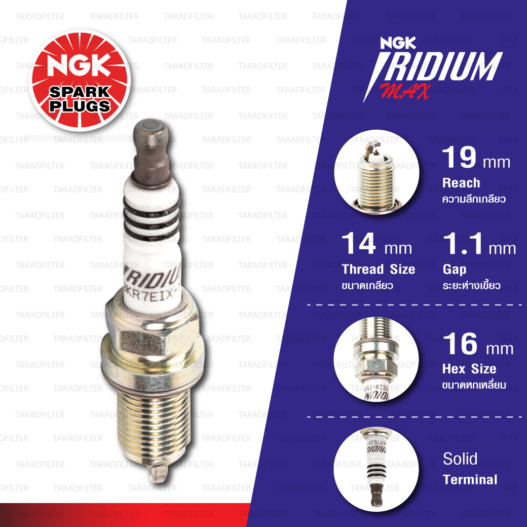 NGK หัวเทียน Ruthenium HX ขั้ว Ruthenium FR7BHX-S ( ใช้อัพเกรด BKR7E / BKR7EIX / ZFR7F-11 ) (1 หัว) - Made in Japan ![[BKR7EIX-11PS] หัวเทียน NGK Iridium Max [ จำนวน 1 หัว ] [BKR7EIX-11PS] หัวเทียน NGK Iridium Max [ จำนวน 1 หัว ]](https://www.taradfilter.com/wp-content/uploads/2026/02/BKR7EIX-11PS-2.jpg)
