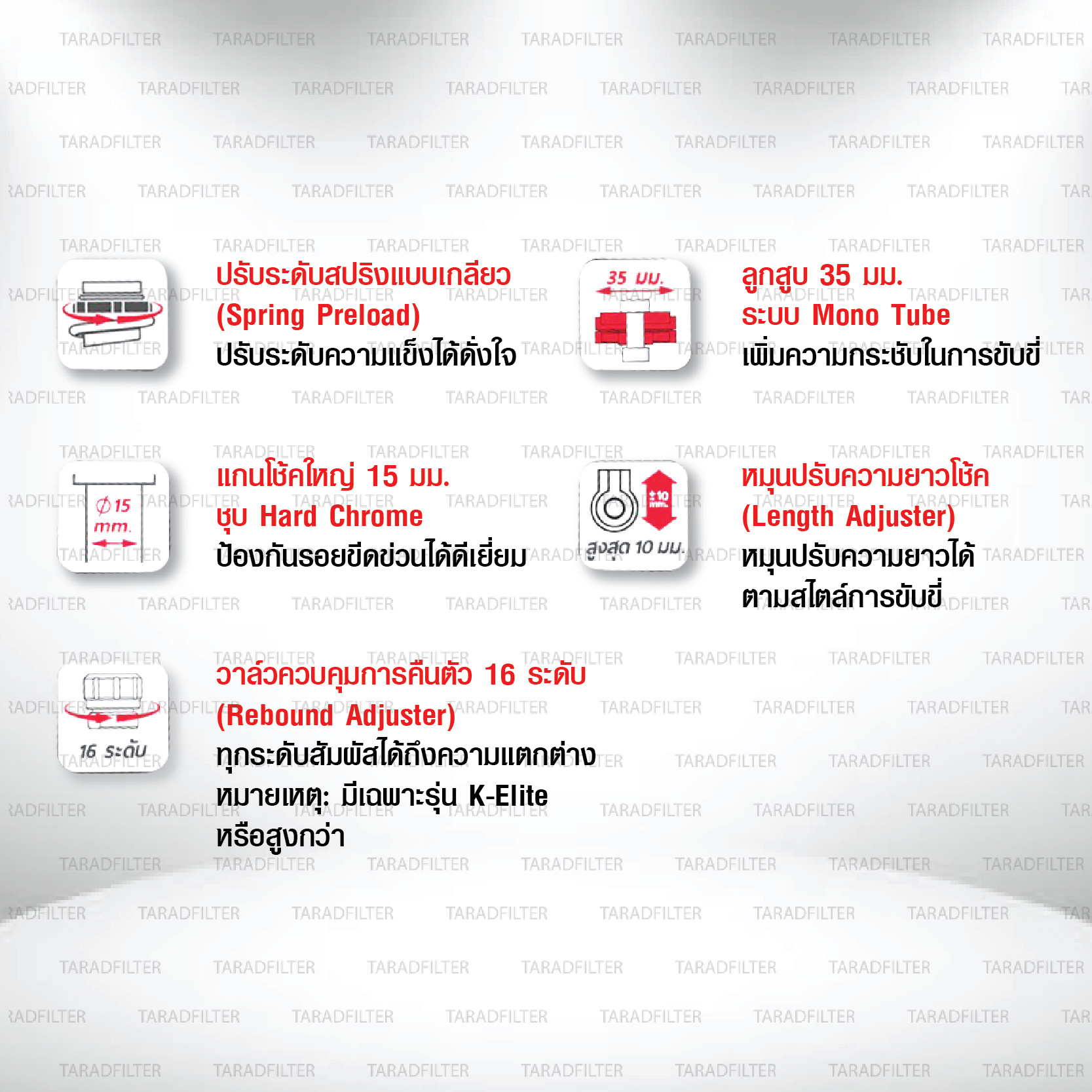 ![KYB โช๊คแก๊ส K-Elite อัพเกรด Honda Wave 110i '21> / Wave 125i '23>【 SG2-1019-2 】สปริงแดง [ โช๊ค KYB แท้ ประกันโรงงาน 1 ปี ]](https://www.taradfilter.com/wp-content/uploads/2025/10/SG2-1019-2-K-Elite-08.jpg)