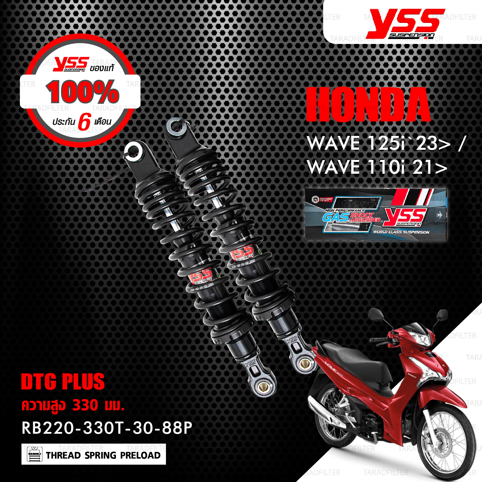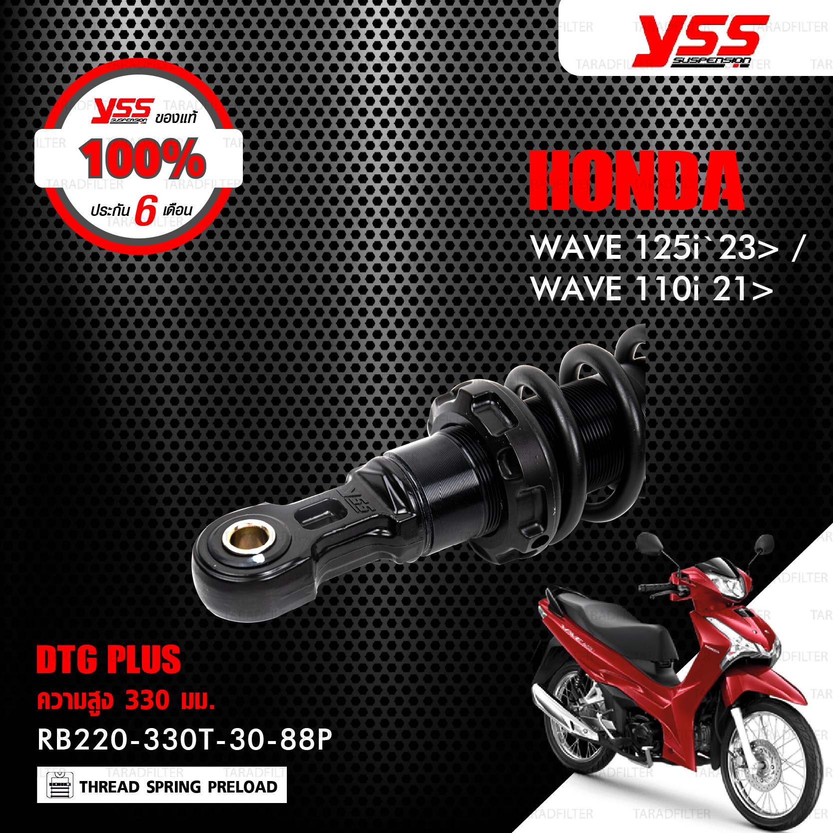![YSS โช๊คแก๊ส DTG PLUS อัพเกรด Honda WAVE 125i '23> / WAVE 110i '21>【 RB220-330T-30-88P 】 สปริงดำ/แกนดำ ( ความสูง 330mm ) [ โช๊ค YSS แท้ ประกันโรงงาน 6 เดือน ]](https://www.taradfilter.com/wp-content/uploads/2025/11/RB220-330T-30-88P-01.jpg)