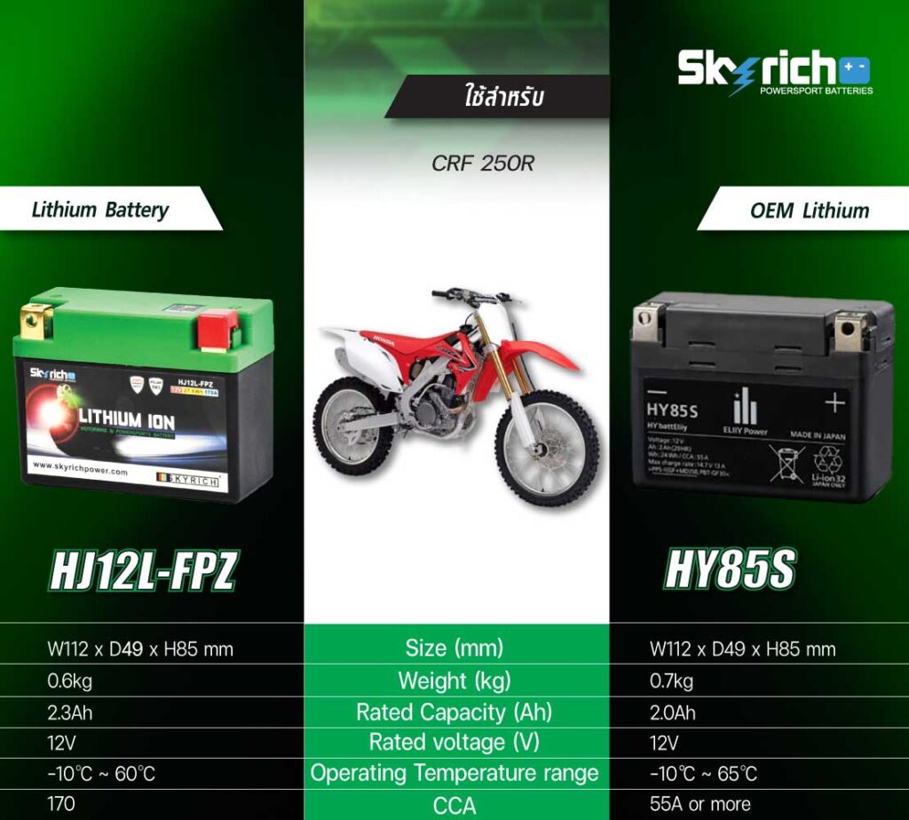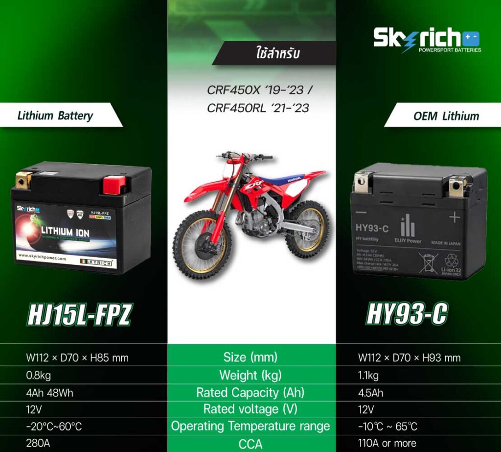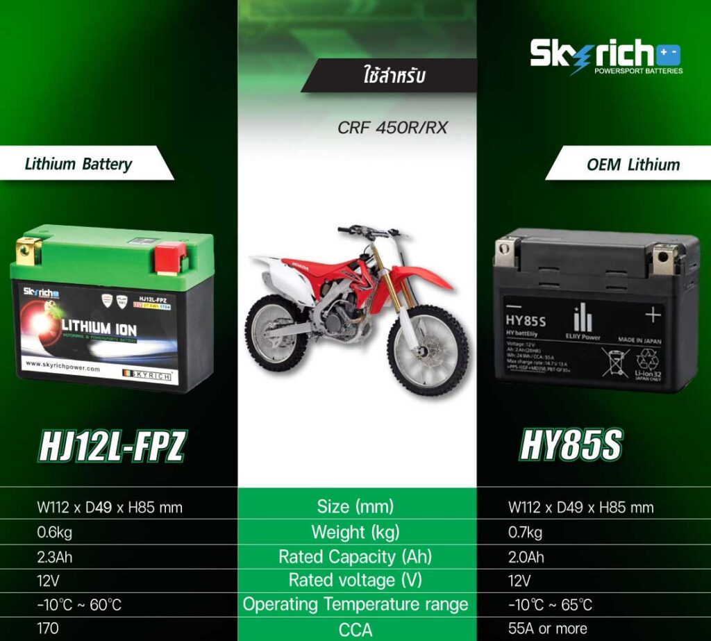 ![SKYRICH แบตเตอรี่ LITHIUM ION รุ่น HJ12L-FPZ ใช้สำหรับ Honda CRF250R '18-'23 / CRF250RX '19-'23 / CRF450R '18-'23 / CRF450RX '18-'23 [ ใช้แทน HY85S ]](https://www.taradfilter.com/wp-content/uploads/2020/05/HJ12L-FPZ-02-1-300x300.jpg)